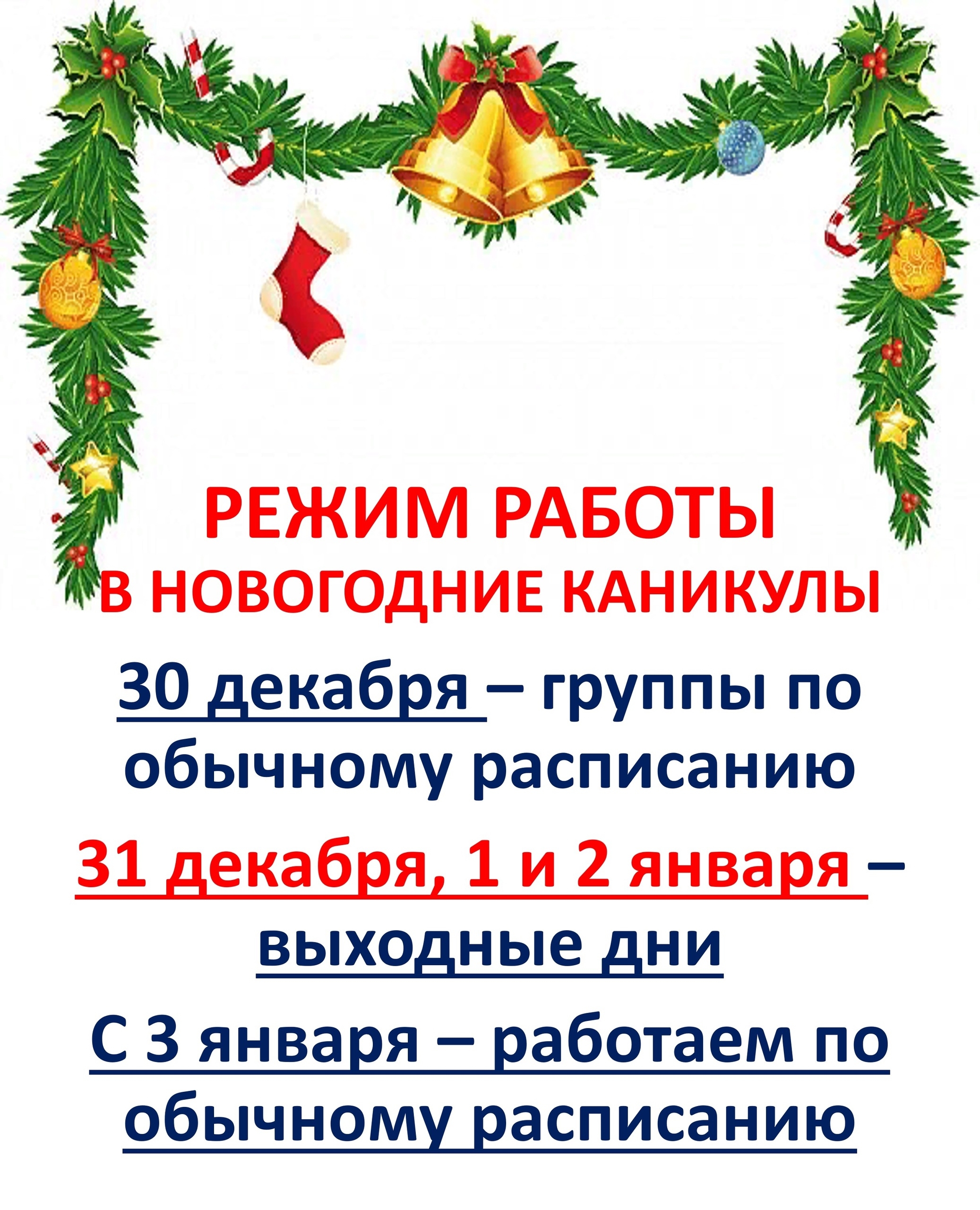 Режим работы в новогодние праздники